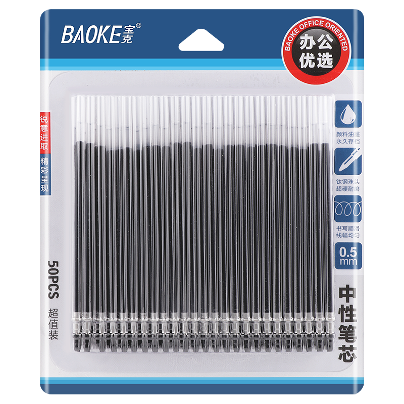 最常見的中性筆芯筆頭直徑有0.5mm,最常見的中性筆筆芯筆頭樣式是子彈頭。