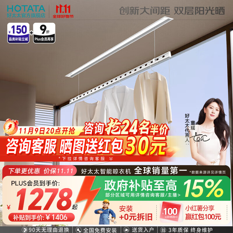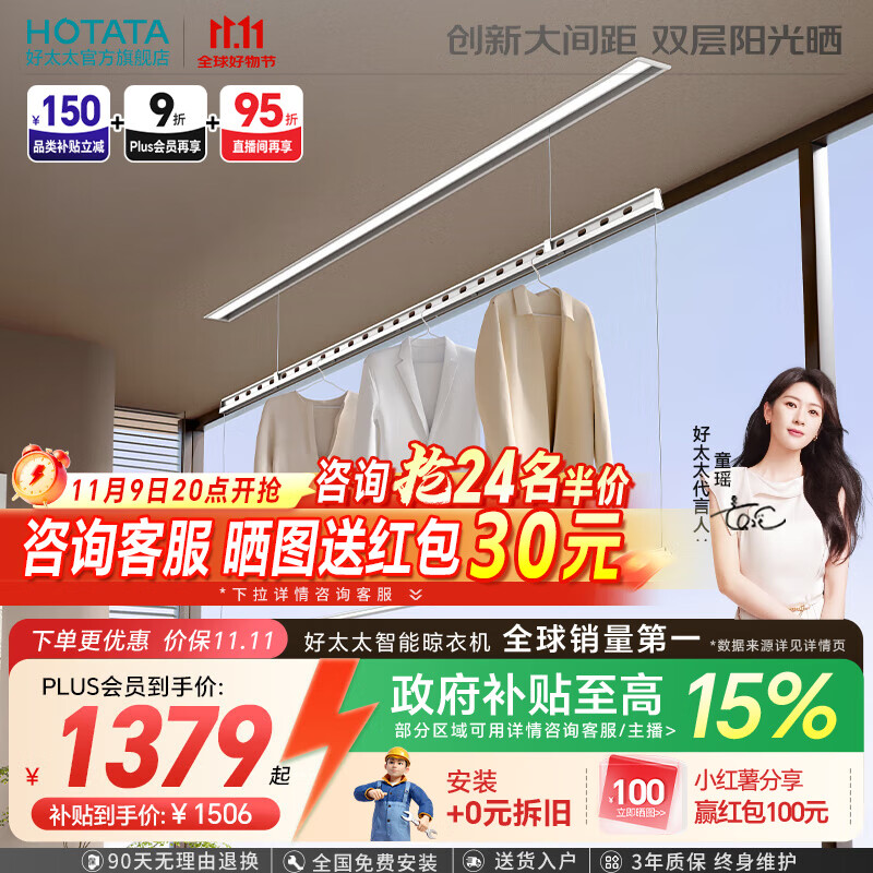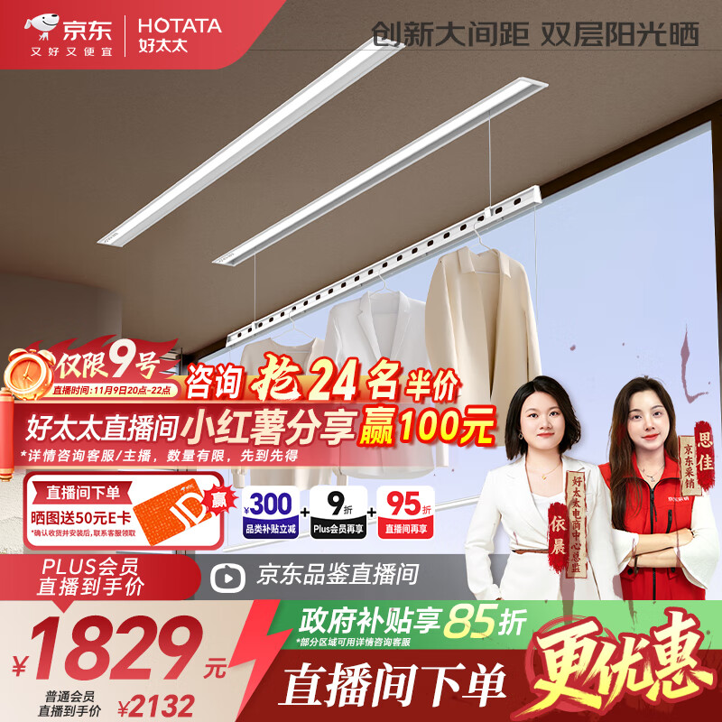 好太太(Hotata) 電動晾衣架可嵌入式一體晾衣桿隱藏式曬衣架自動升降智能晾衣機(jī) 【D-3139S】纖薄