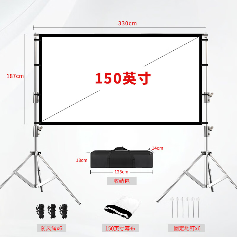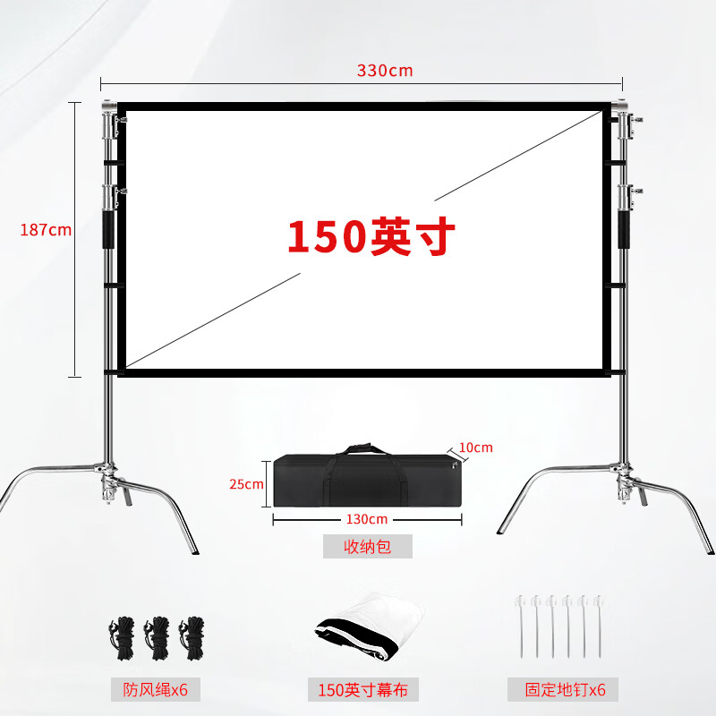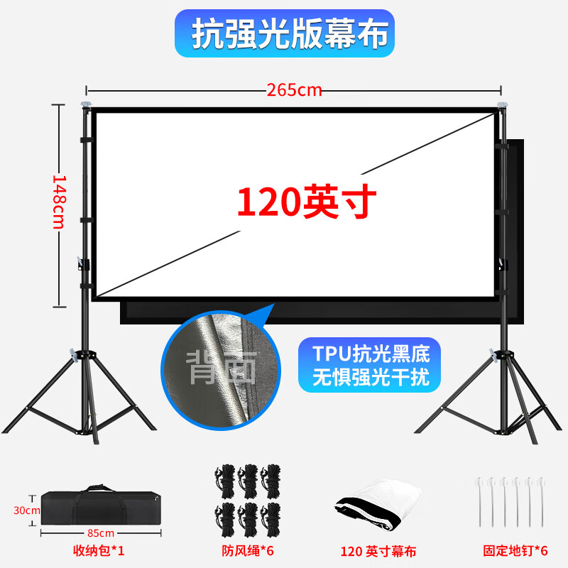 809元方影戶外投影幕布防風(fēng)露營帳篷室外投影布防風(fēng)折疊幕布室外露天電影幕老式廣場放映高清納米便攜布幕 300英寸16:9【6.65m*3.75m】 光學(xué)灰軟【前灰后黑不透光】京東 1k