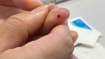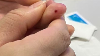 這個(gè)人扎完手還沒放試紙,測(cè)糖步驟不標(biāo)準(zhǔn)