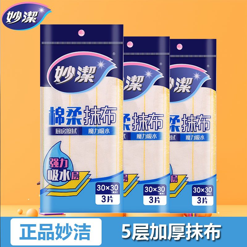妙潔 棉柔抹布 5片裝 廚房洗碗布家用神器 強力吸水 新老包裝隨機發(fā)貨