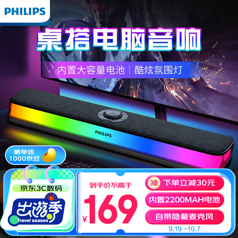 飛利浦SPA4209 藍(lán)牙音箱 RGB氛圍燈 重低音立體聲桌面對箱