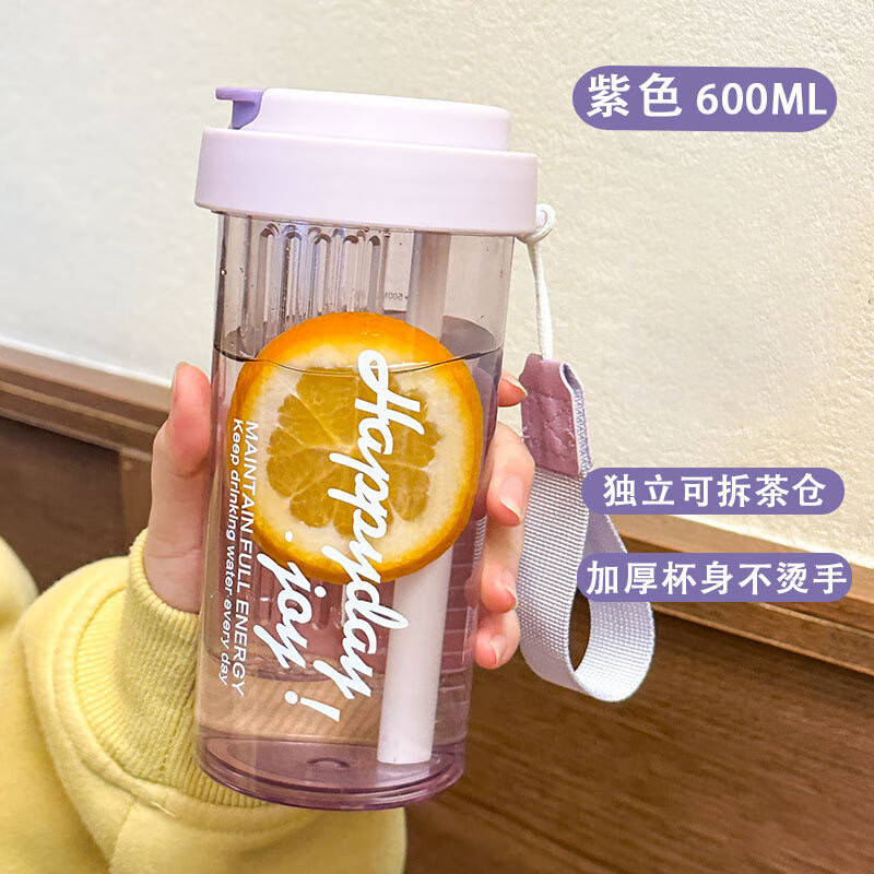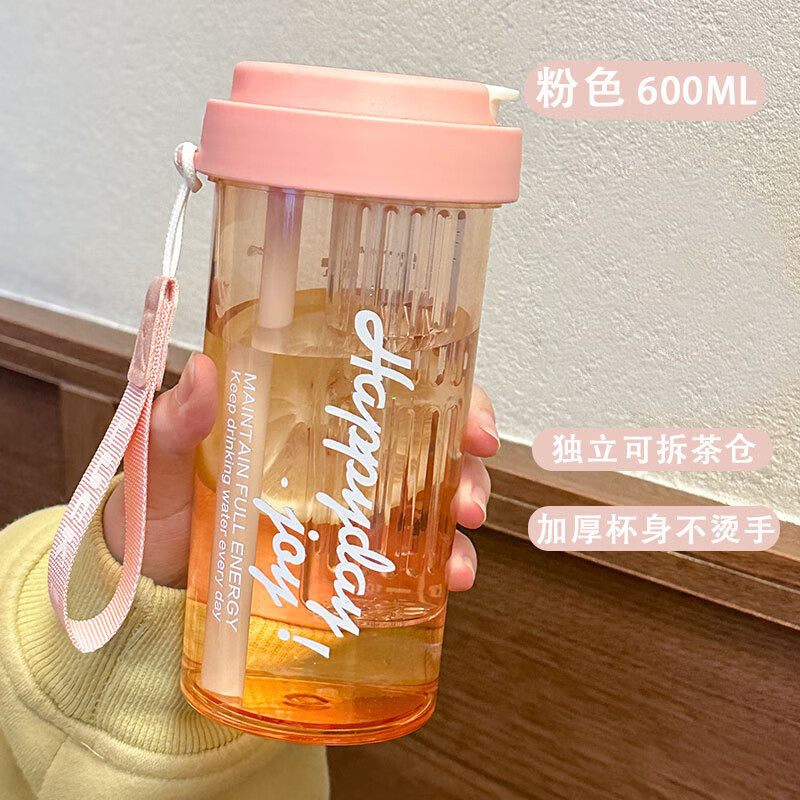 花茶杯男女學(xué)生高顏值吸管杯運(yùn)動杯子便攜耐高溫咖啡折疊杯600ml