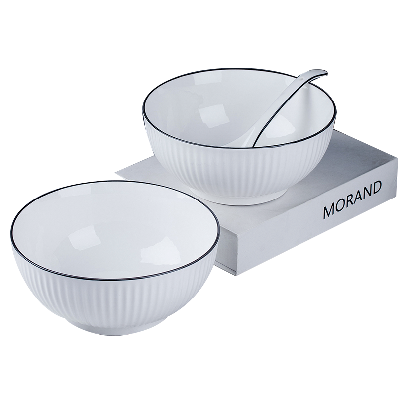 ?墨居仁 家用6個6英寸面碗組合北歐簡約黑線大號碗沙拉碗宿舍學(xué)生用泡面碗 黑線豎紋6個6英寸面碗沖沖沖沖
