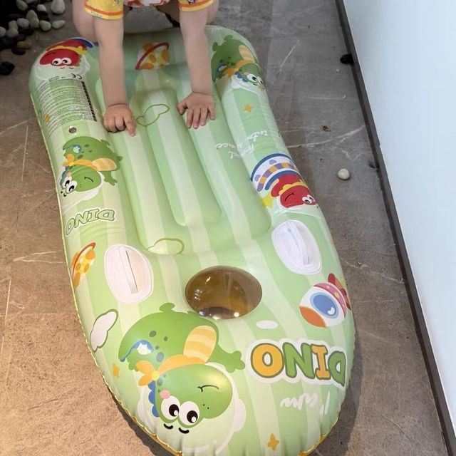 奶爸帶著花色的游泳圈陪娃耍水了