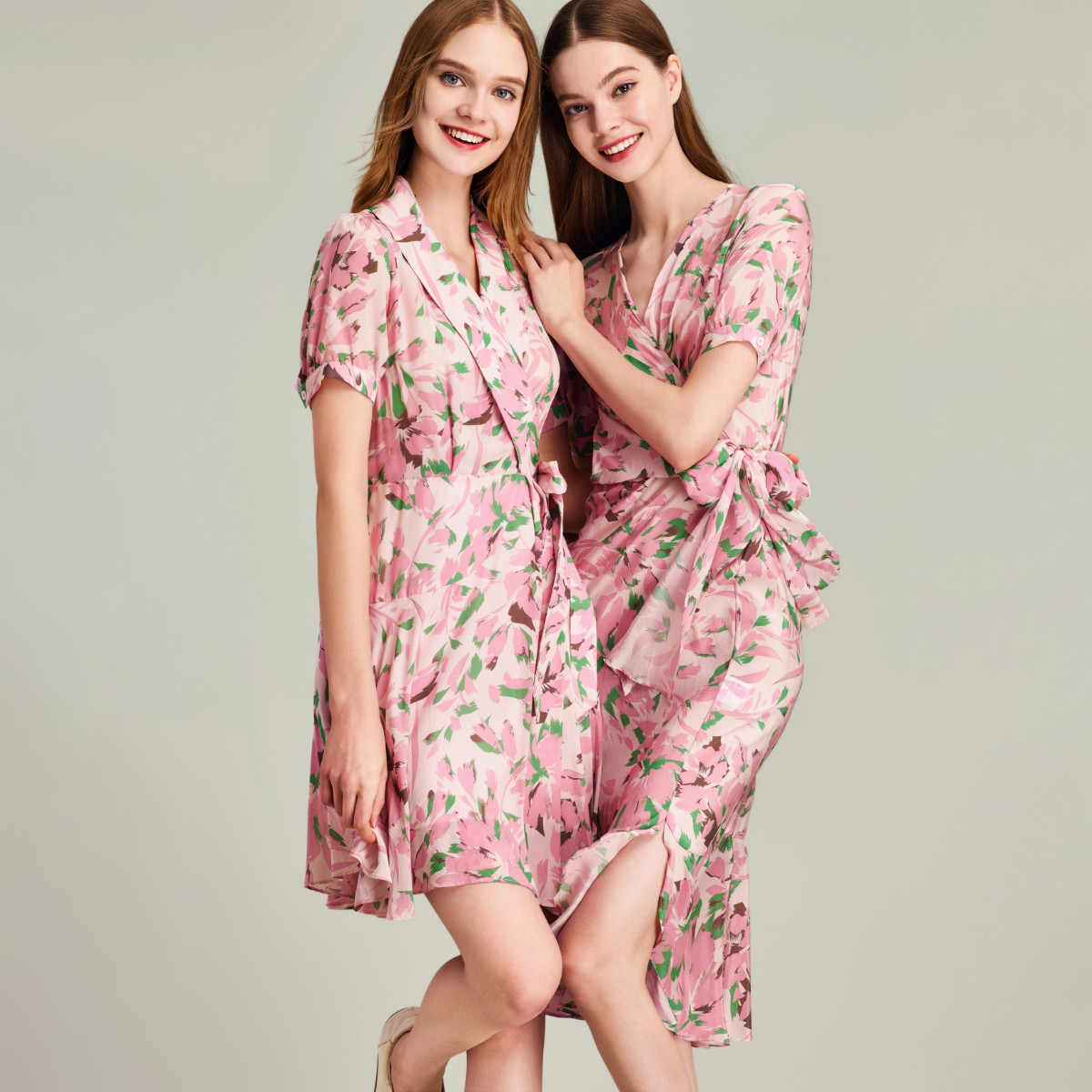 有長袖也有短袖款式的黃色碎花連衣裙~
