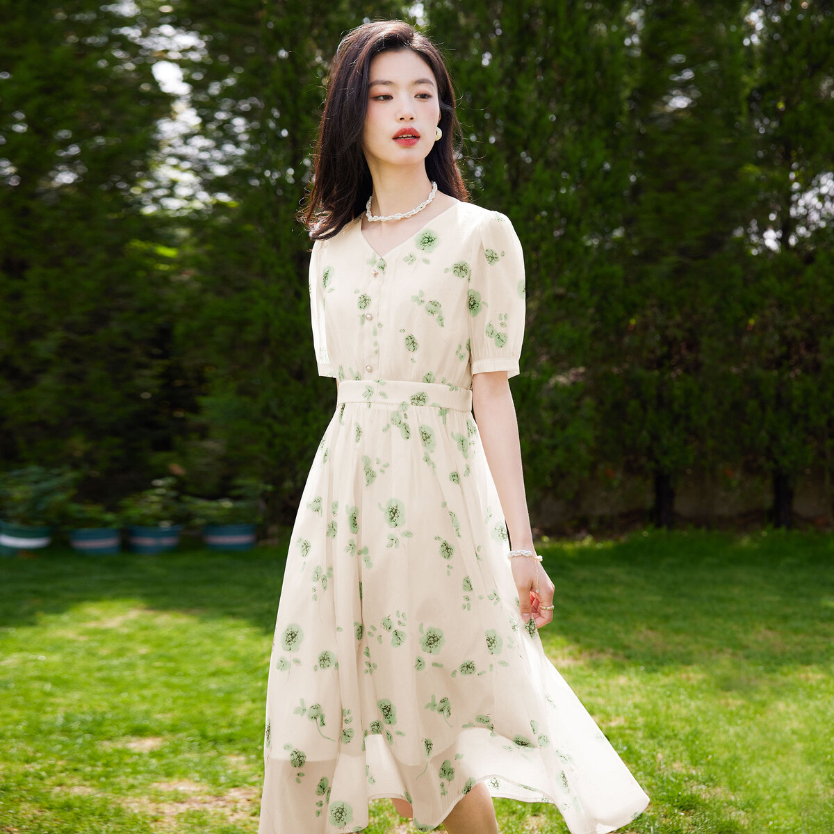 品彩夏季溫柔風(fēng)碎花短袖連衣裙:潮流風(fēng)格,劃算好物