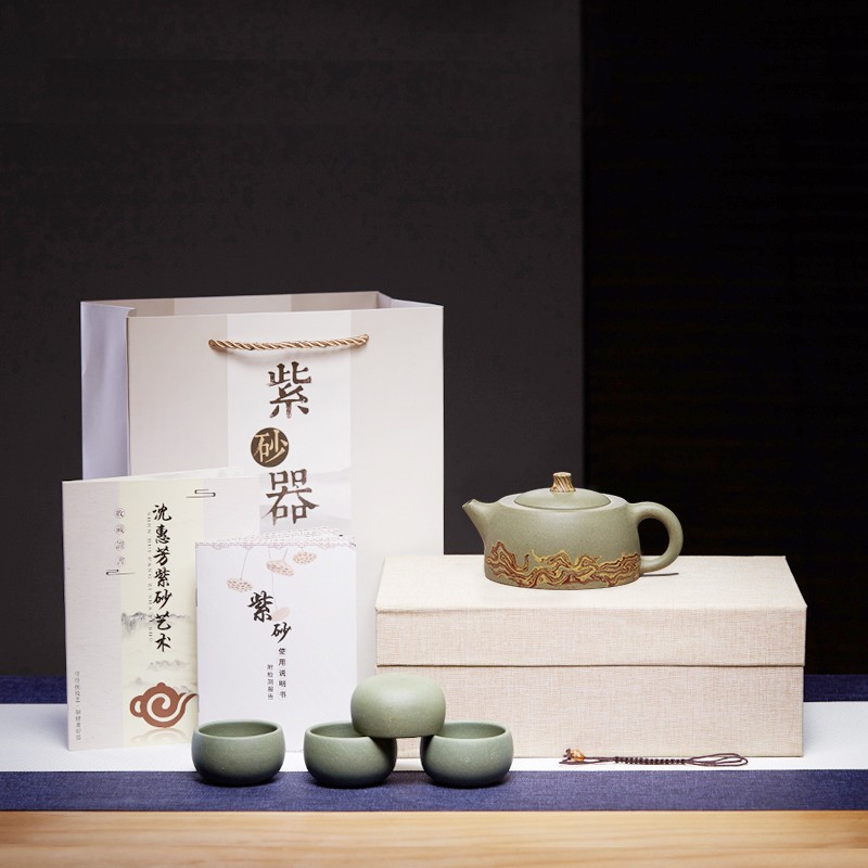 紫砂壺是中國一種傳統(tǒng)茶壺,相傳源自宋代至明武宗正德年間。制作紫砂壺的材料是宜興紫砂礦土,泥礦屬沉積巖,每色礦巖相疊,由鱗片狀紫泥、本山綠泥、白泥、黃泥和紅泥構(gòu)成,統(tǒng)稱紫砂泥。因產(chǎn)自江蘇宜興,又稱宜興紫砂。好茶者認(rèn)為,用紫砂壺泡茶,茶味雋永醇厚,紫砂壺因泥礦配合窯燒(還原燒)造成特殊的雙氣孔結(jié)構(gòu),能充份透氣產(chǎn)生活性轉(zhuǎn)換水質(zhì),改變茶香茶味,因此茶壺泡出來的茶越香越醇。注:本名詞內(nèi)容引自維基百科