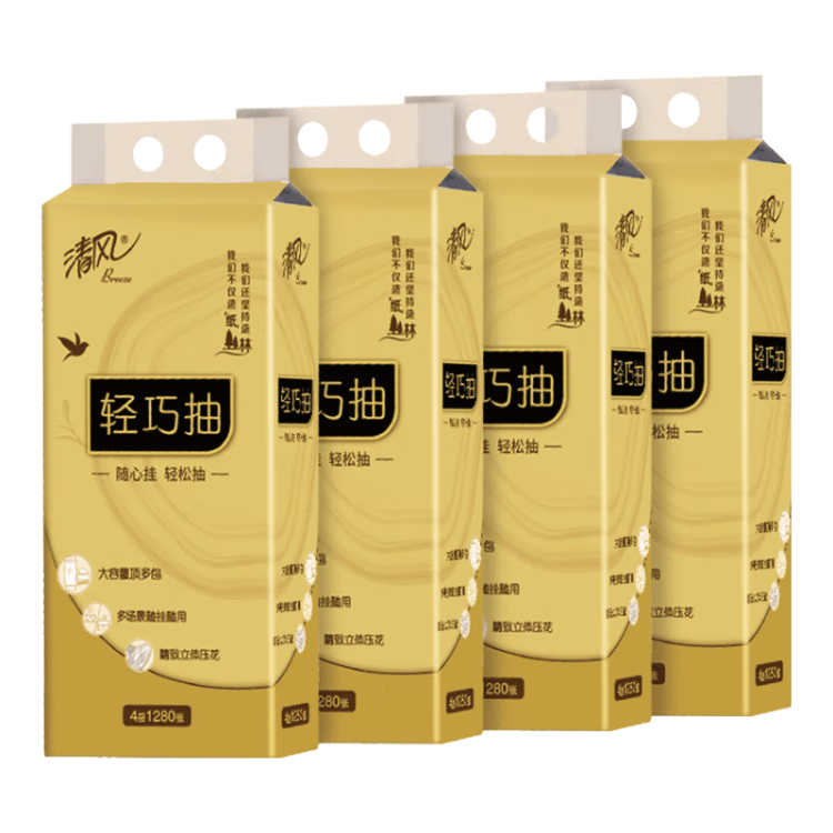 4層超厚實(shí),觸感更柔和!清風(fēng)金裝柔厚紙巾,家庭常備小幫手!3268 3632 -