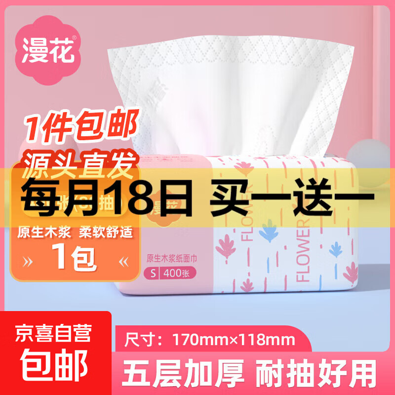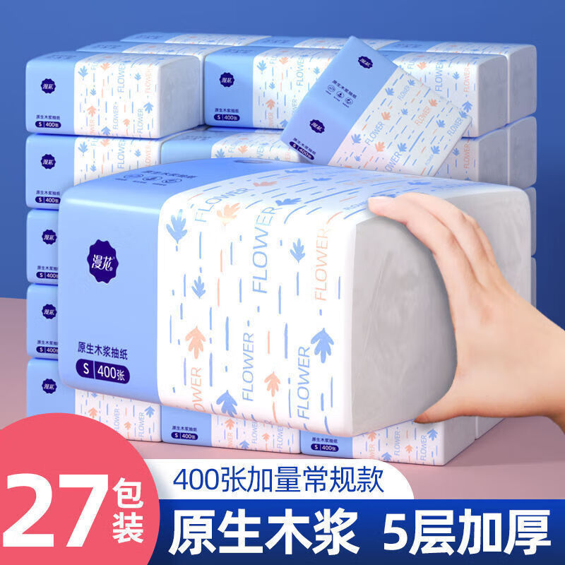 漫花藍(lán)茶花紙巾抽紙4層400張*20大包整箱批發(fā)家用餐巾面巾紙
