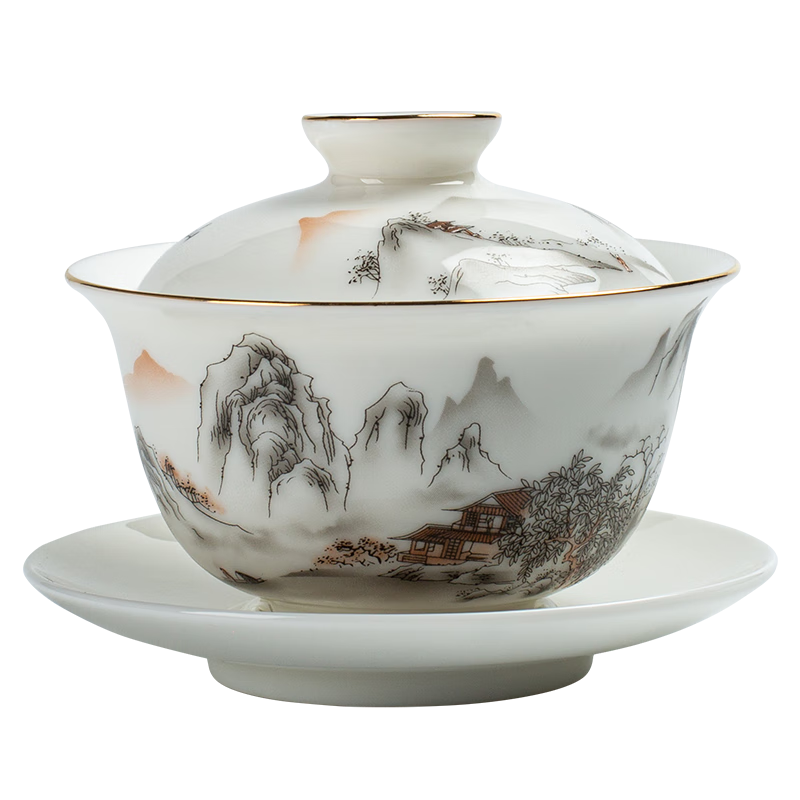 喝茶怎么能缺少蓋碗呢?——德化羊脂玉描金邊蓋碗