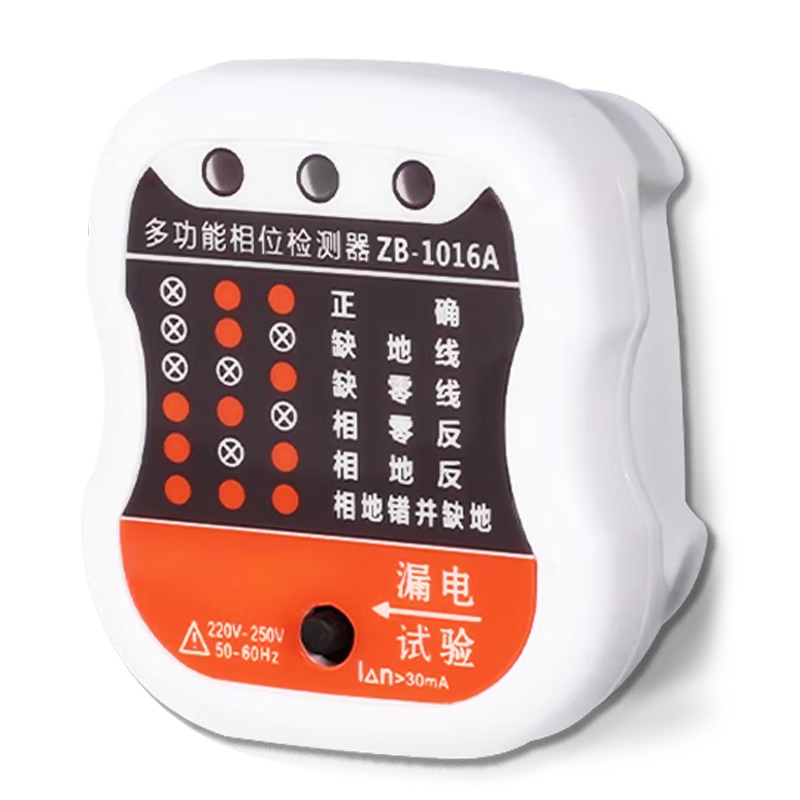 用相位檢測儀檢測相零反(火線零線接反),缺地線,漏電保護是否有效
