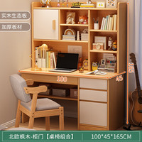 北歐實木書桌書架書柜一體桌簡約學生家用學習桌臥室電腦桌兒童