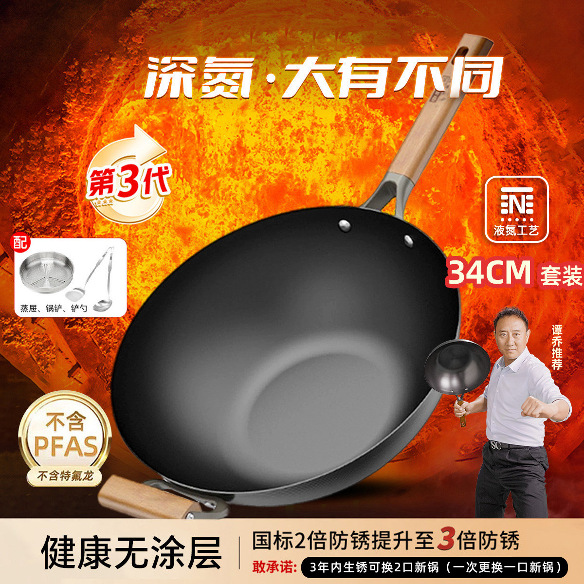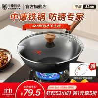 愛(ài)仕達(dá)(ASD)炒鍋三代不銹無(wú)涂層鑄鐵鍋32cm平底炒菜鍋具可立蓋電磁爐通用送鏟