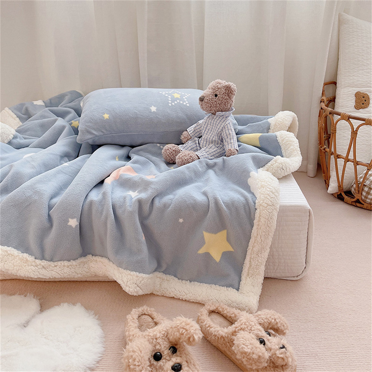 鋪在床上或睡覺時蓋在身上的毛織品、棉織品或棉毛混織品,大多有圖案或圖畫。也有鋪在地上或掛在墻上的。