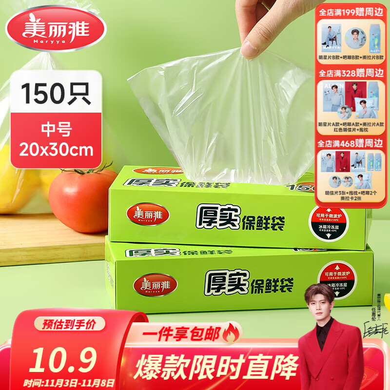 廚房神器秀翻天,美麗雅厚實(shí)保鮮袋點(diǎn)斷平口家用廚房食品袋。