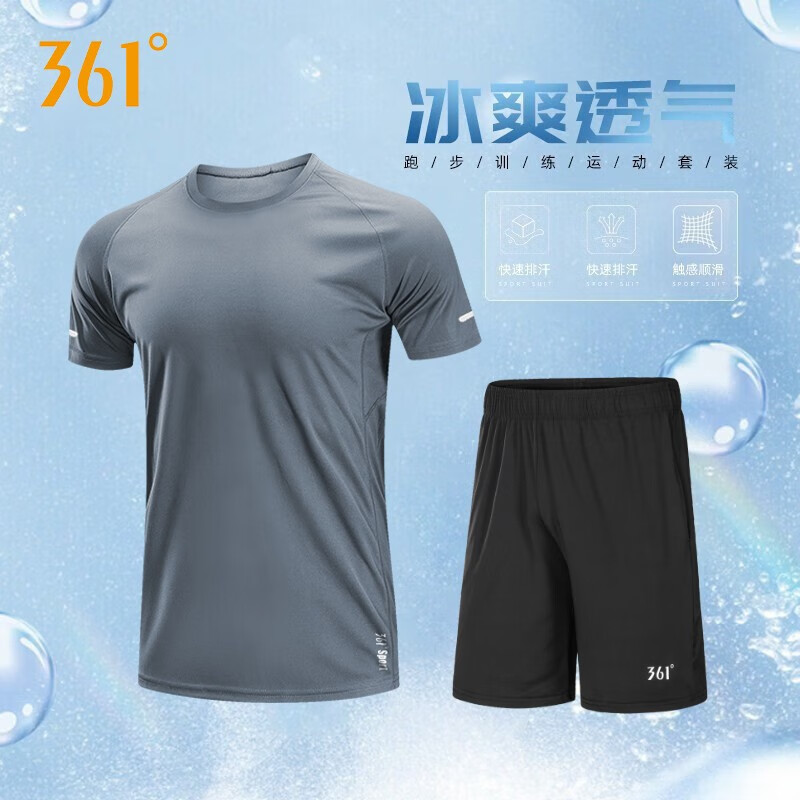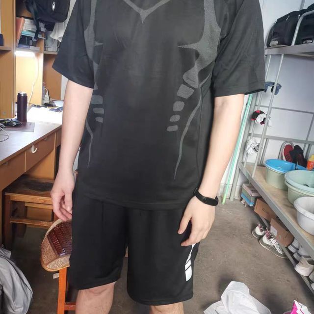 艾倫伯頓(Alen Botun)運動套裝男健身服速干冰絲休閑短袖夏季寬松薄款訓(xùn)練籃球跑步服