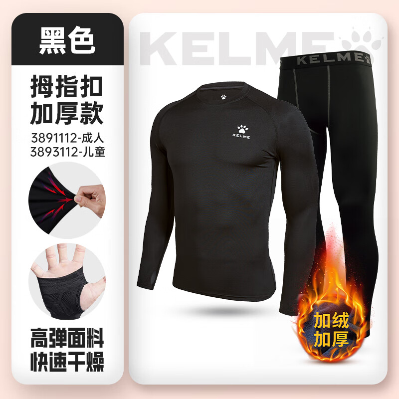 贏虎(YINGHU)運動套裝跑步加絨男士速干衣秋冬季保暖健身服男訓(xùn)練緊身服高彈 3件套【長袖快