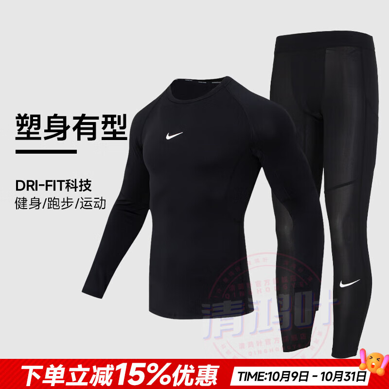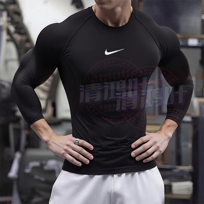昇億 運動套裝男士健身服秋冬季運動服速干衣短袖緊身衣健身褲跑步籃球訓(xùn)練服彈力壓縮衣健身房加絨 黑夜傳昇