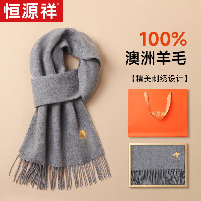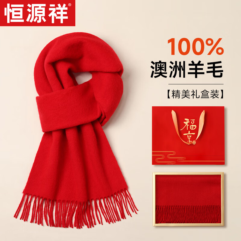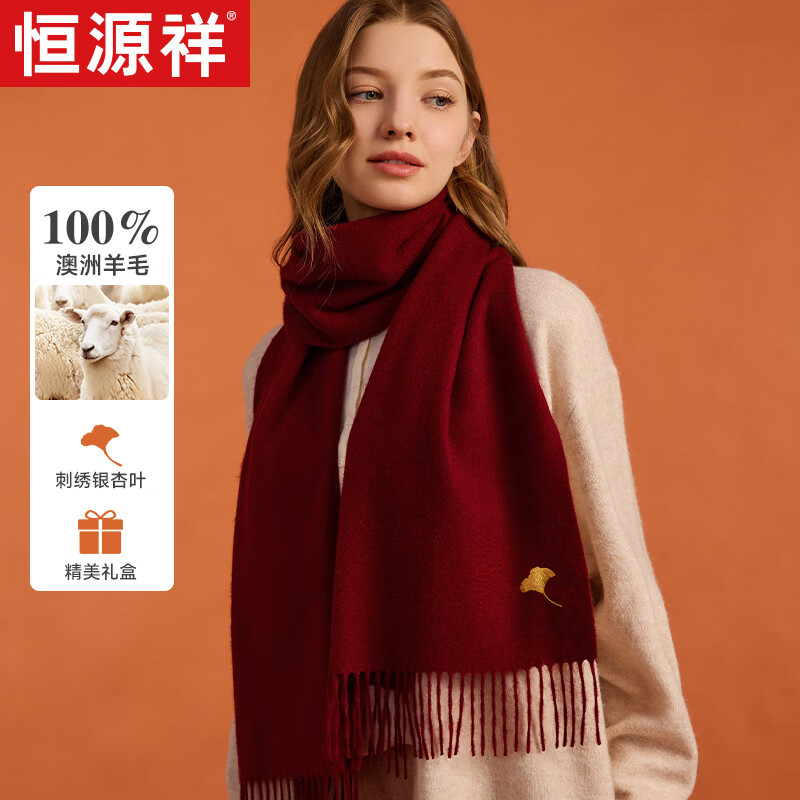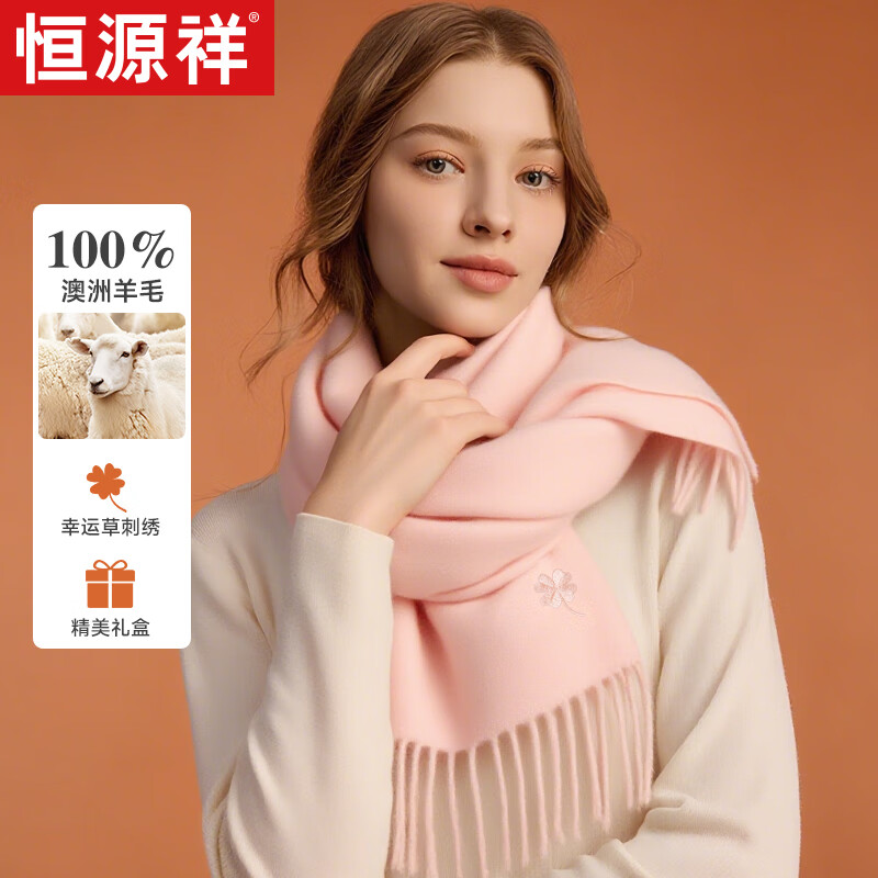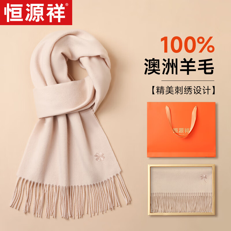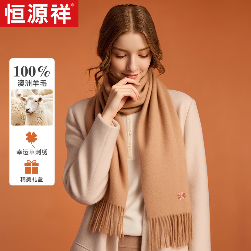 恒源祥純羊毛圍巾女士秋冬季披肩保暖圍脖媽媽生日禮物女送長輩禮盒裝