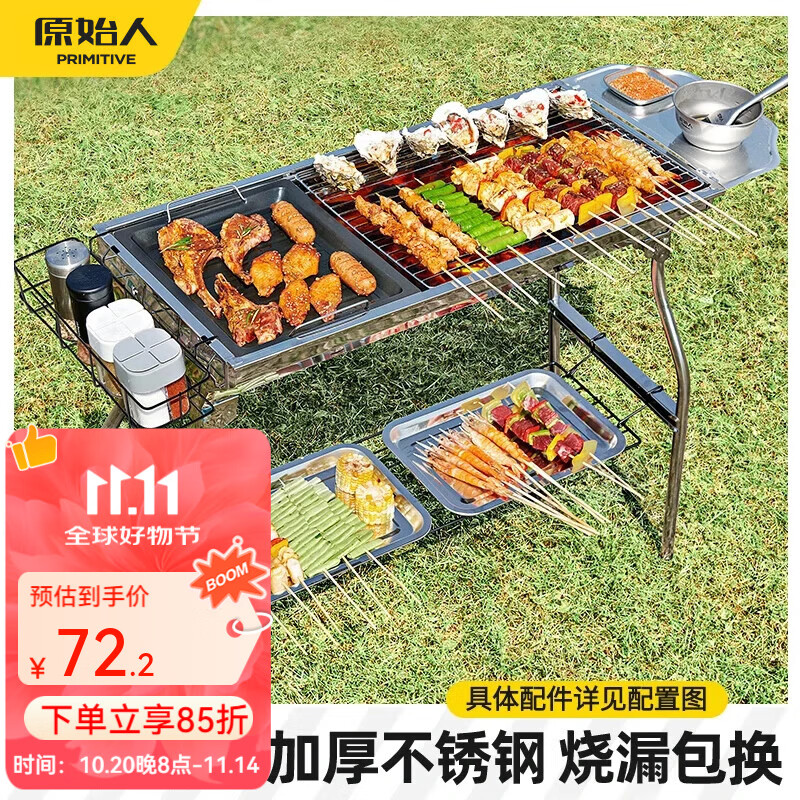 原始人燒烤爐戶外不銹鋼燒烤架 家用烤肉架便攜碳烤爐 暢烤套餐