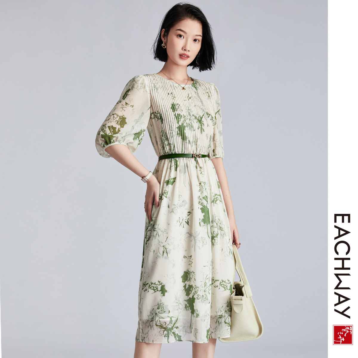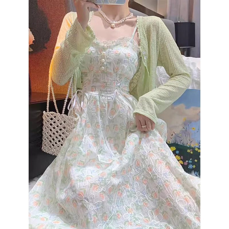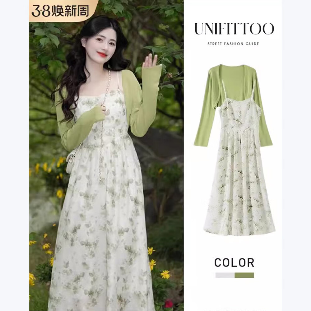 秋日法式小清新,花雪紡吊帶連衣裙帶你追尋高級(jí)感