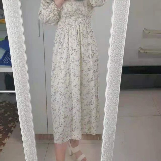 法式碎花度假長(zhǎng)袖連衣裙