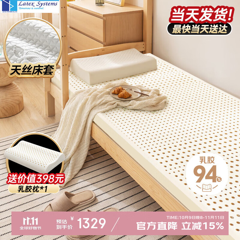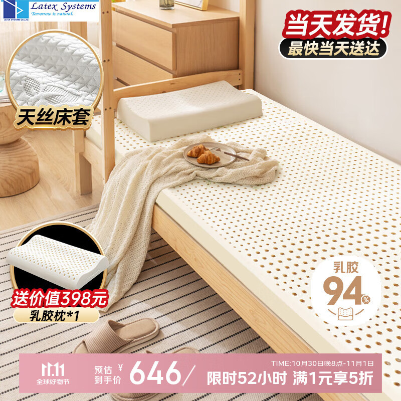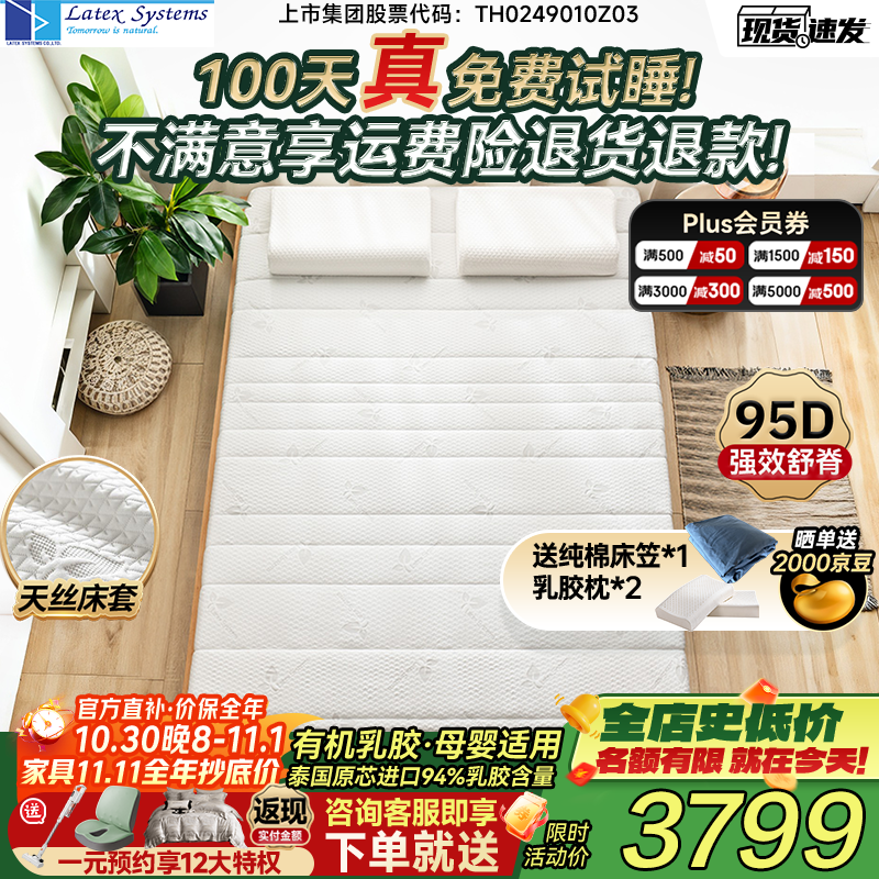 Latex Systems泰國(guó)原裝進(jìn)口乳膠床墊 94%含量榻榻米床褥子 雙人1.8米2米7.5cm厚