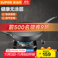 已開鍋極鐵鍋不粘鍋家用炒鍋電磁爐燃?xì)庠顚S贸床隋仧o涂層熟鐵鍋