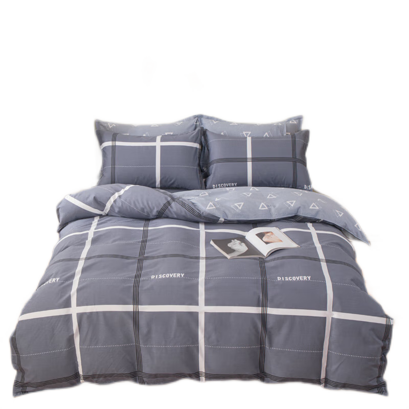 簡麗輕奢提花床上四件套凉感雙人被套200*230cm1.5/1.8通用千鳥格藍(lán)