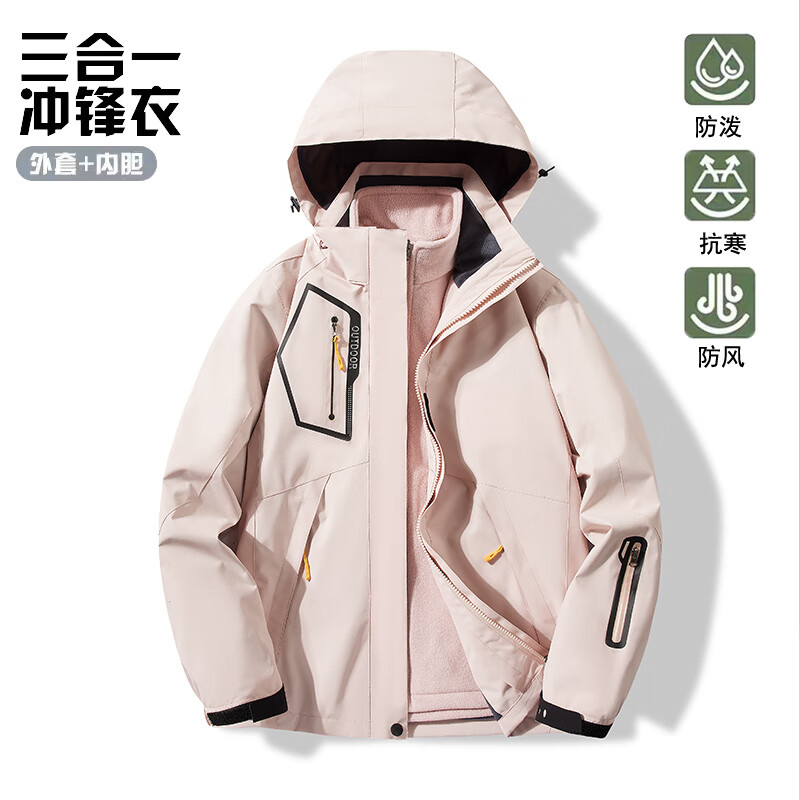 伯希和沖鋒衣男女三合一秋冬戶外防水硬殼情侶外套登山服12040106粉L