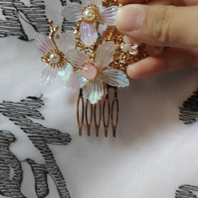 頭飾,指戴在頭上的飾物。與其它部位的首飾相比,裝飾性最強,因而主要是女性首飾,包括發(fā)飾和耳飾、帽子。古代女子頭飾大多華麗精巧,更是美發(fā)的重要部分,梳好的發(fā)髻要用花和寶鈿花釵來裝飾。寶鈿花釵里包括發(fā)簪,華盛,步搖,發(fā)釵和發(fā)鈿。注:本名詞內(nèi)容引自百度百科。