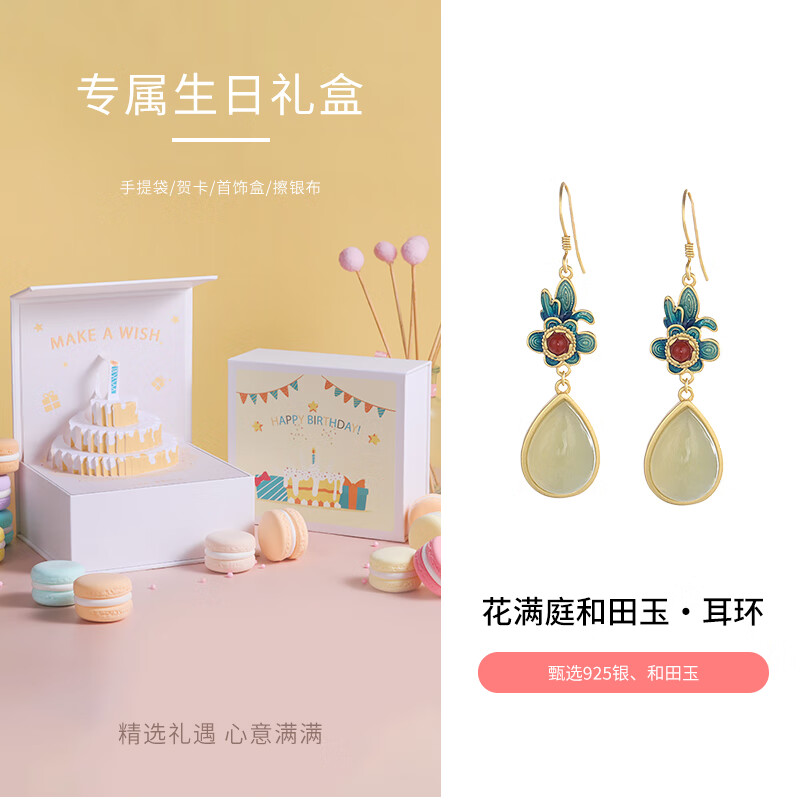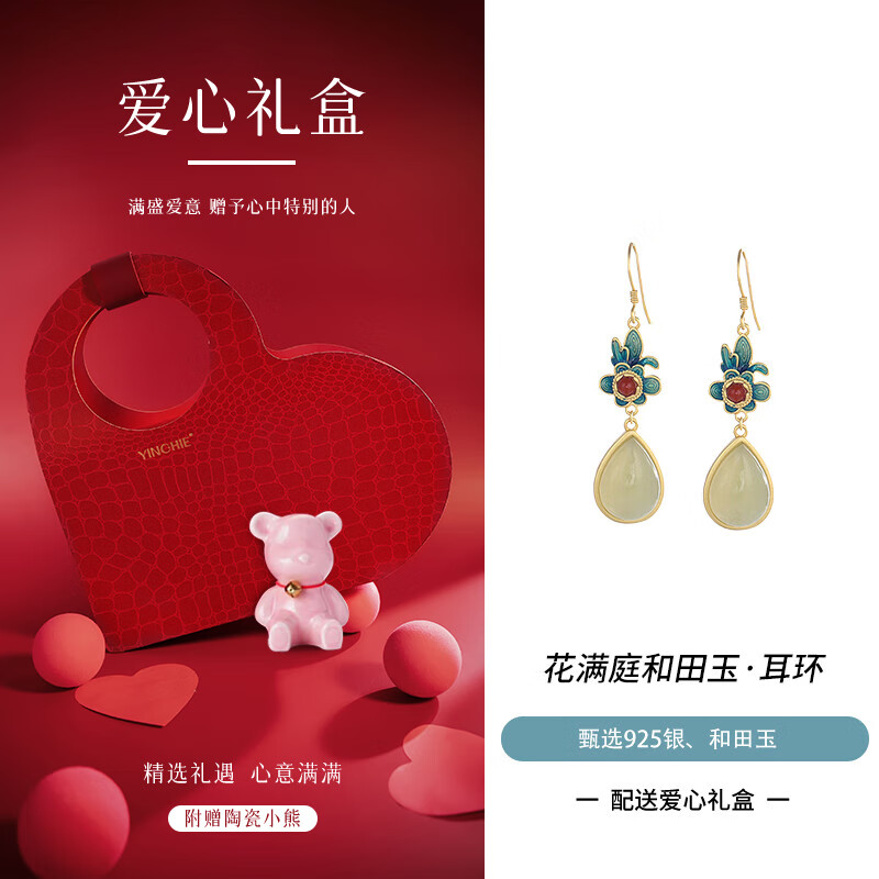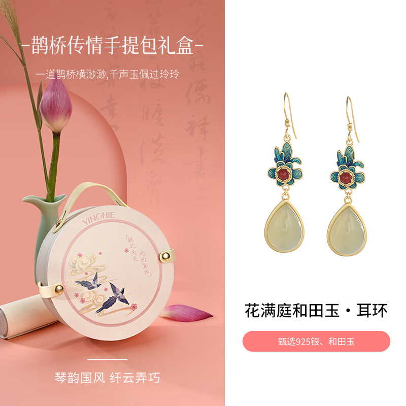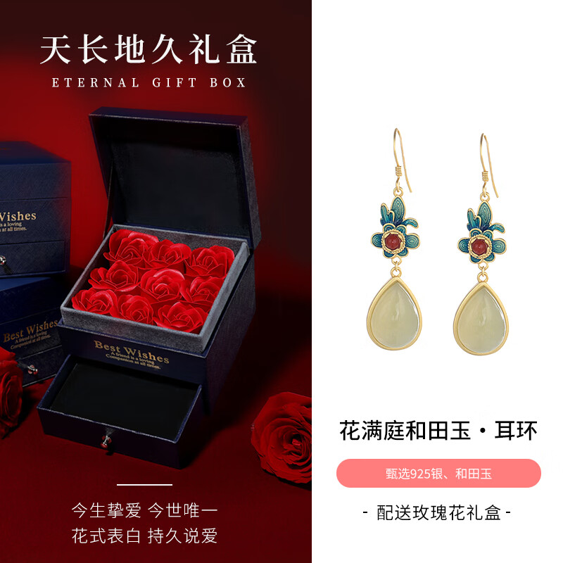 378元銀千惠925銀和田玉耳釘女士水滴耳墜耳環(huán)輕奢情人節(jié)生日禮物送女友媽媽 花滿(mǎn)庭和田玉耳環(huán) 永生花禮盒 精美禮盒/配首飾證書(shū)/情人節(jié)女生禮物京東 500