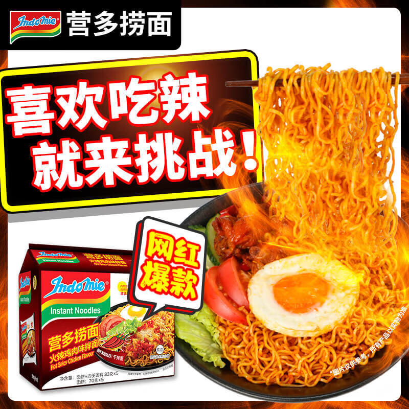 這個干拌面可還行?營多 原味撈面85g*5袋 印尼進口拌面炒面早餐面進口方便面泡面速食