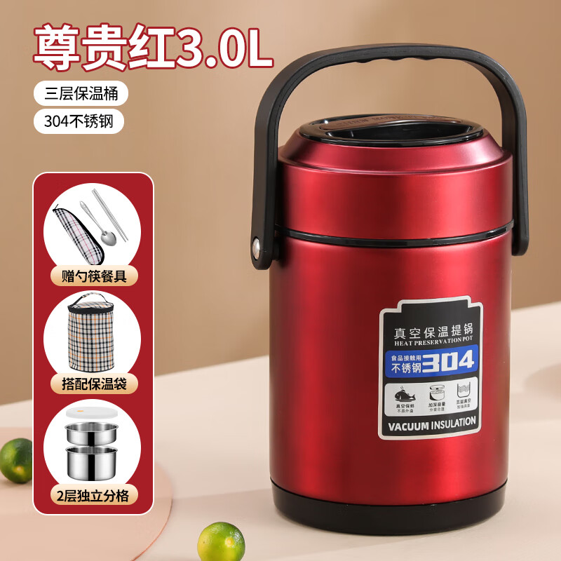 冬天不銹鋼保溫飯盒超長便攜大容量帶飯桶24小時上班族手提桶湯壺