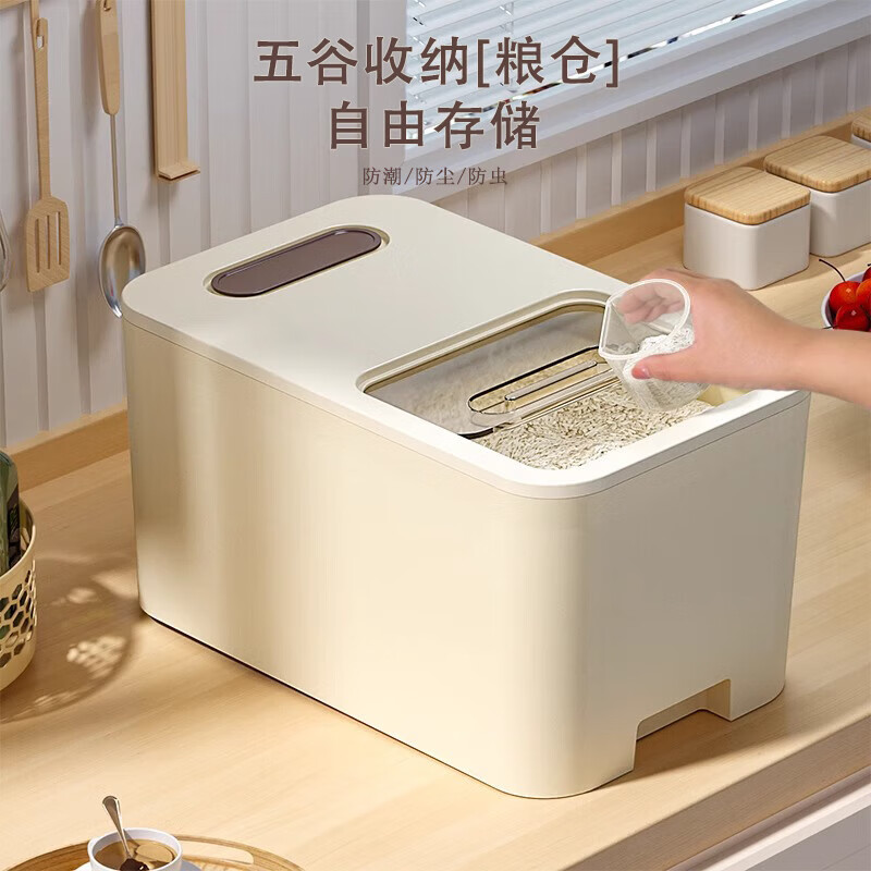 佳幫手旋轉(zhuǎn)分格家用米桶:防蟲防潮,密封裝大米缸,五谷雜糧收納盒