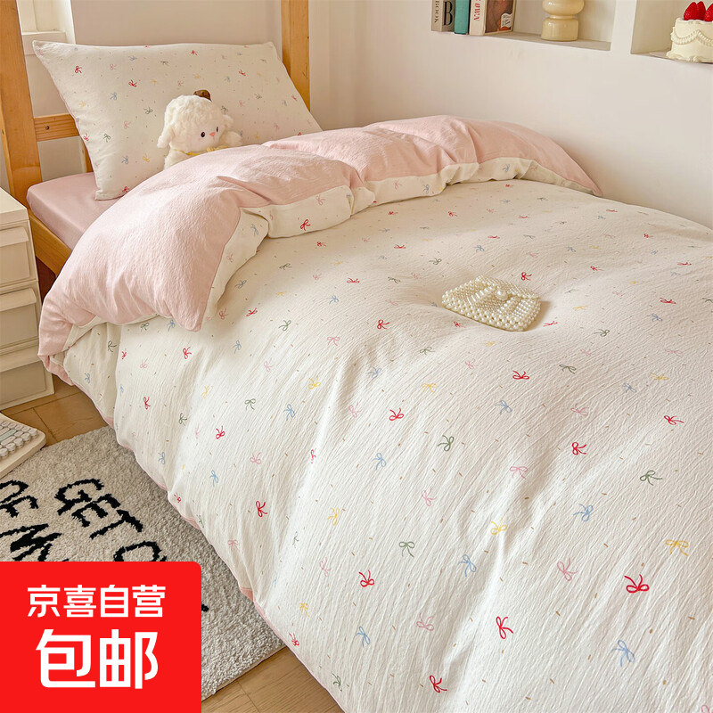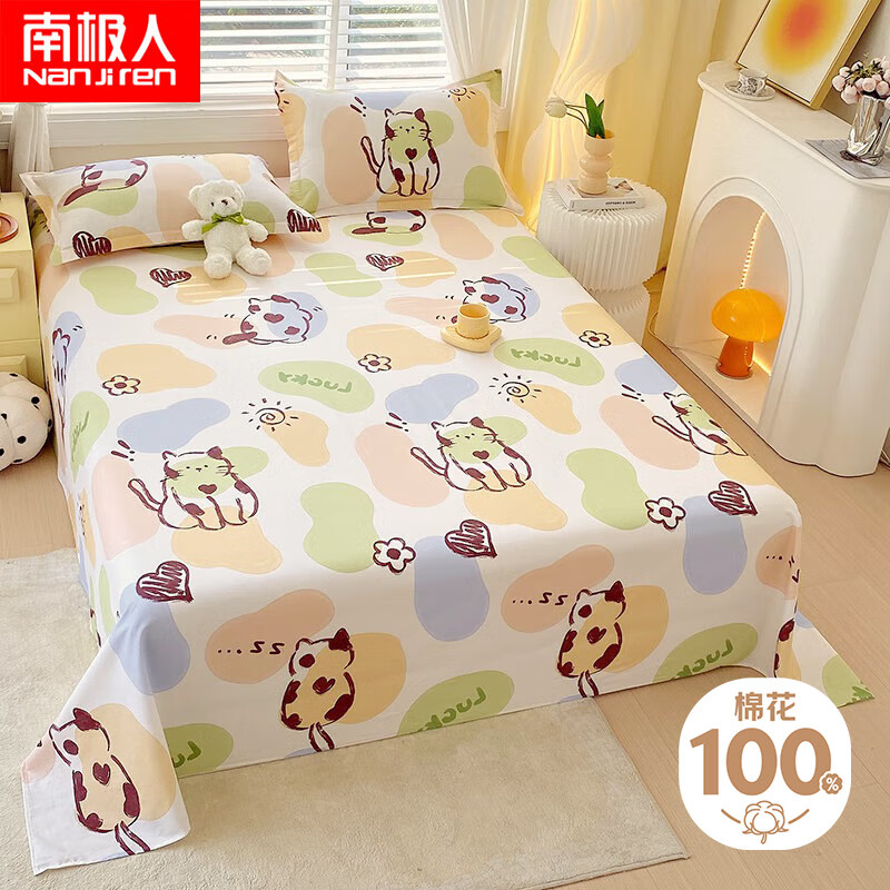 全棉床單單件夏季100純棉水洗棉宿舍單人被單枕套三件套2024新款