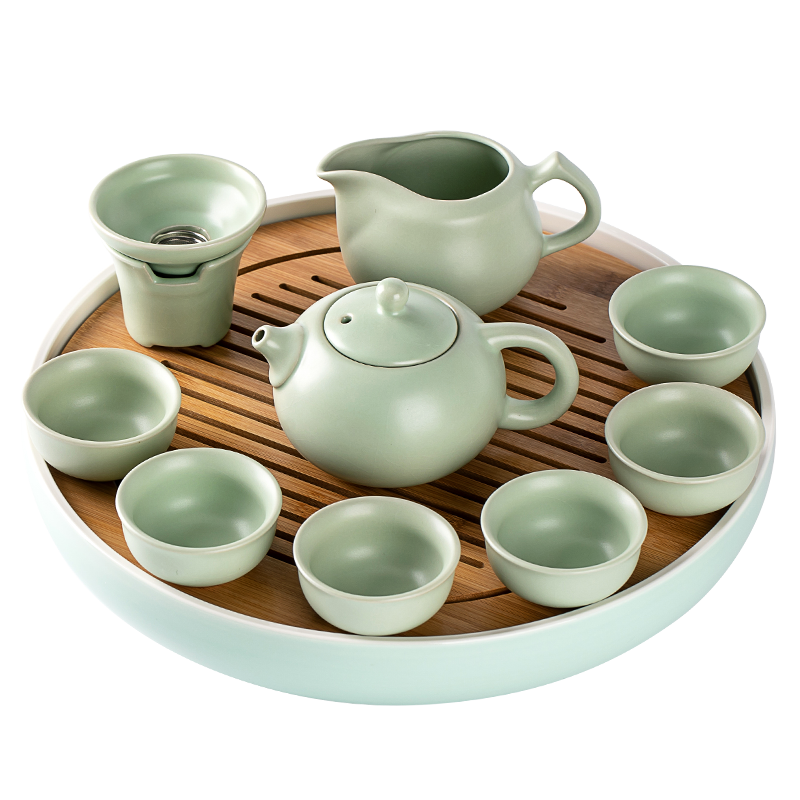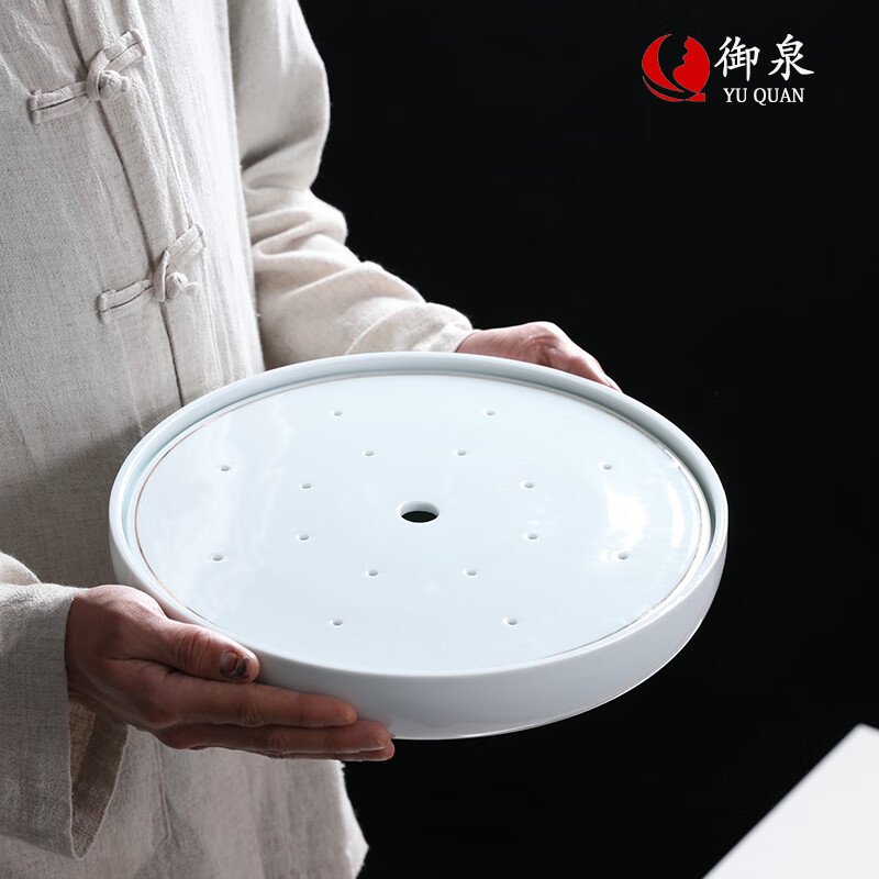 茶盤(pán)是用來(lái)置茶杯的,材質(zhì)廣泛,款式多樣,圓月形、棋盤(pán)形……等等。但不管什么材質(zhì)和式樣,寬、平、淺、白這四個(gè)特點(diǎn)是最重要的。就是盤(pán)面要寬,以便就客人人數(shù)多寡,可以放多幾個(gè)杯。盤(pán)底要平,才不會(huì)使茶杯不穩(wěn),易于搖晃;邊要淺,色要白,這都是為了烘托茶杯、茶壺,使之雅觀。-參考來(lái)源百度百科