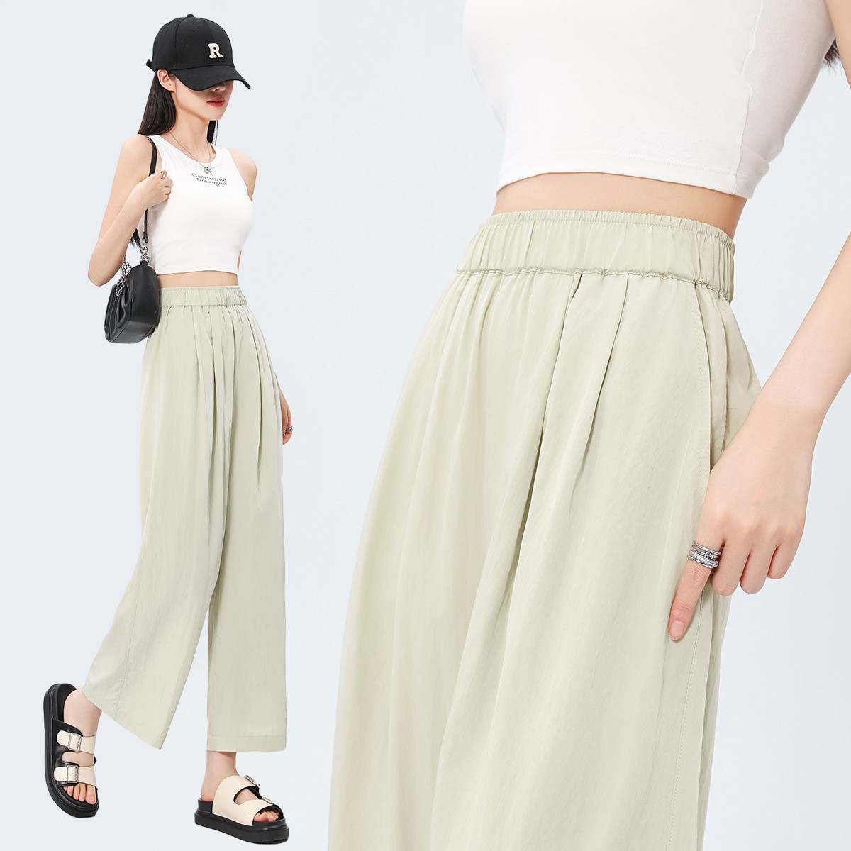 媽媽褲子夏季薄款中老年人女褲外穿直筒寬松大碼奶奶裝冰絲九分褲
