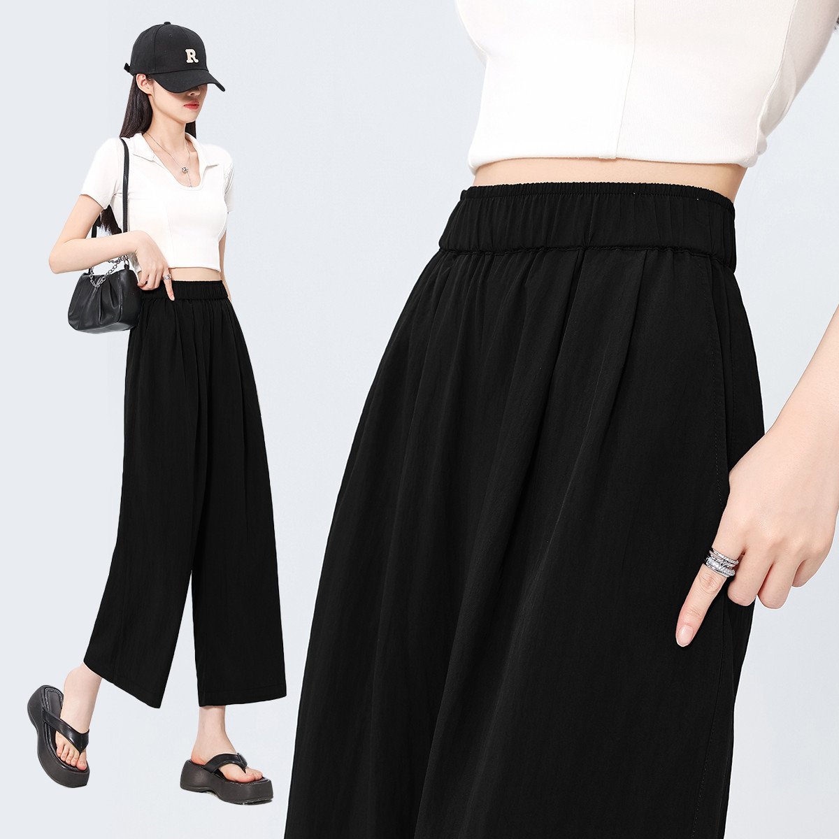 雪茜曼休閑褲女春秋季九分西裝褲女黑色哈倫褲子寬松高腰工作直筒女褲 黑色【薄款】 黑色 L