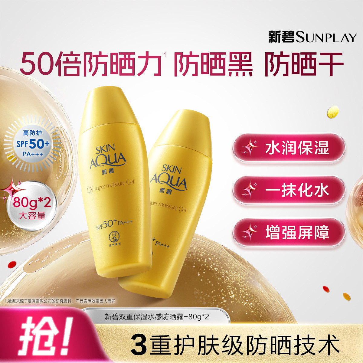 曼秀雷敦新碧小金帽防曬霜乳,清爽水潤,春日防曬護膚的完美邂逅