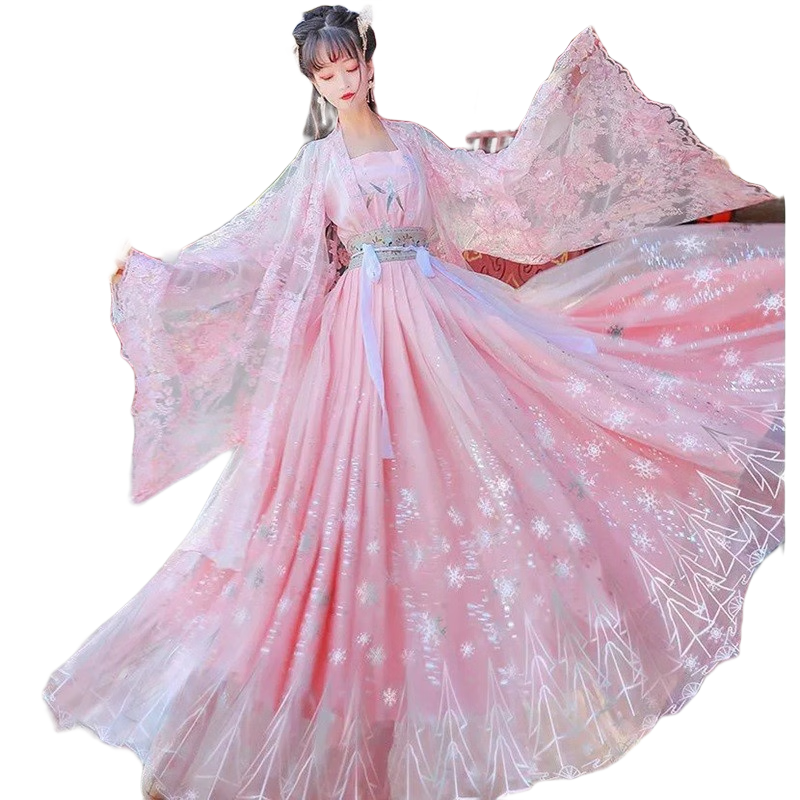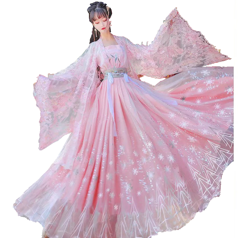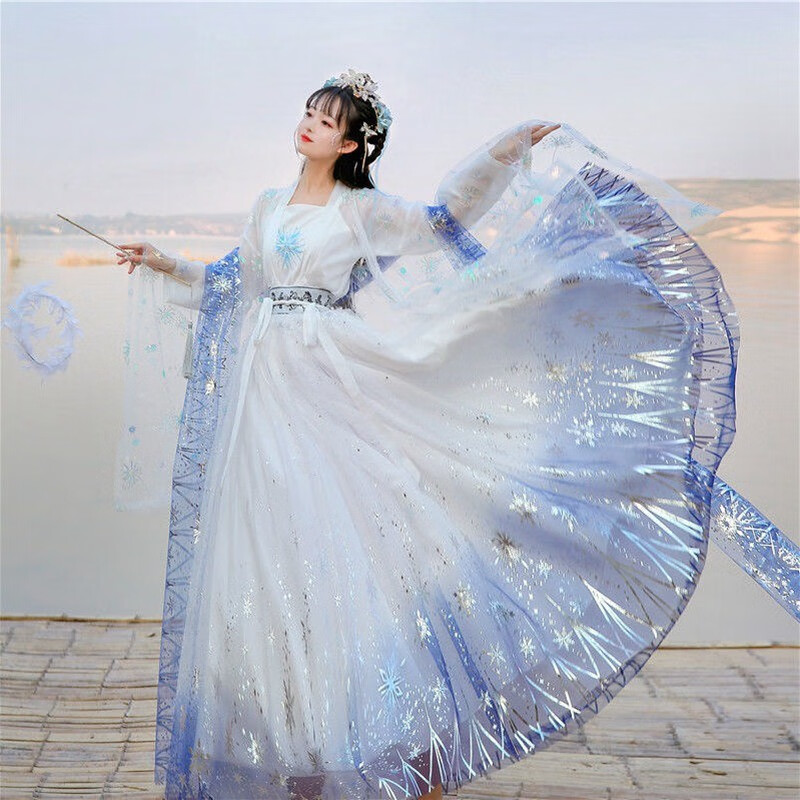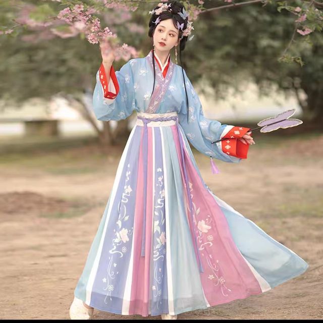 臻一萌漢服女成人交領(lǐng)齊腰襦裙大袖衫齊胸襦裙學(xué)生中國(guó)風(fēng)套裝冬款日常表演服 羽落【大袖衫+上襦+吊帶+齊腰襦裙