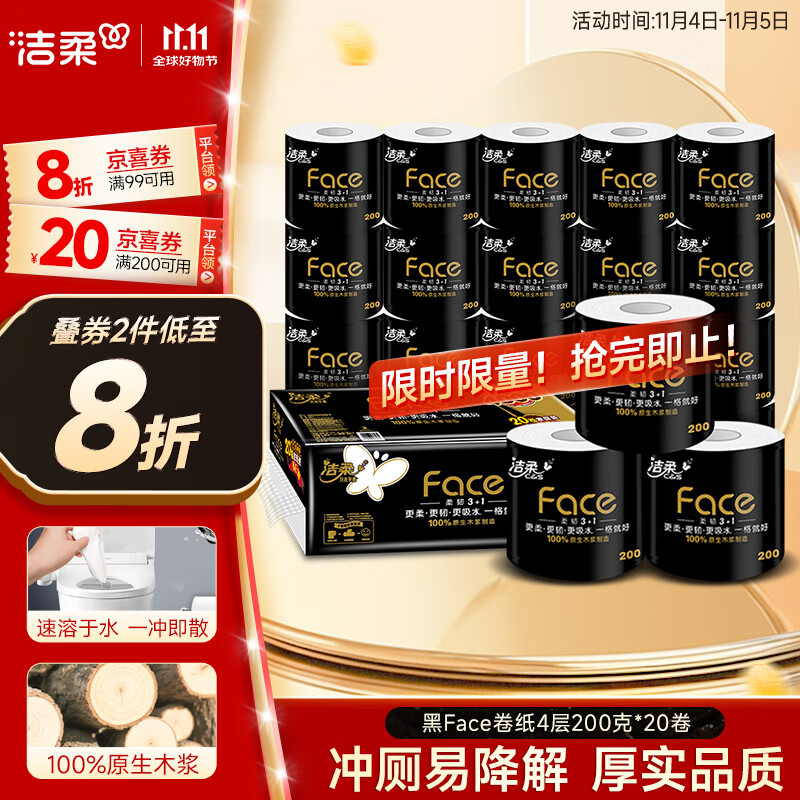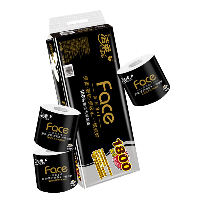 618囤紙攻略:潔柔黑FACE卷紙4層加厚更耐用。