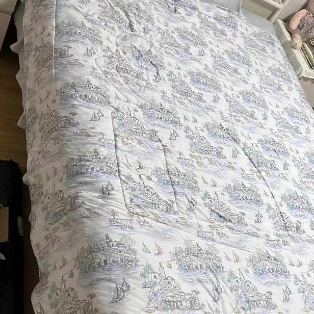 被子是床上用品的一種,是面積足以覆蓋人體、長(zhǎng)方形的布料,一般用作睡眠時(shí)保暖,被子通常由被套或者被單包著棉絮而成,用棉做的被子叫做棉被。除棉被外,也可以用羊毛、蠶絲或者丙烯酸纖維等人造纖維制造。一般都會(huì)選擇全棉面料,絲綢面料或者亞麻面料,棉布就是會(huì)起皺,不太適合冬天使用,夏天大多會(huì)選擇絲綢面料的被子,舒適感覺(jué)透氣性好。亞麻面料的被子在國(guó)內(nèi)用的不是很多,不過(guò)這樣的面料被子使用起來(lái)比較涼爽,大多都是春秋使用。還有人會(huì)選用磨毛面料的被子,內(nèi)膽選用桑蠶絲的。