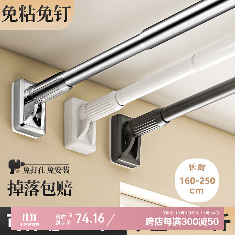 皓梵潔 伸縮桿免打孔不銹鋼浴簾桿可收縮窗簾桿陽(yáng)臺(tái)晾衣桿衣柜支撐桿