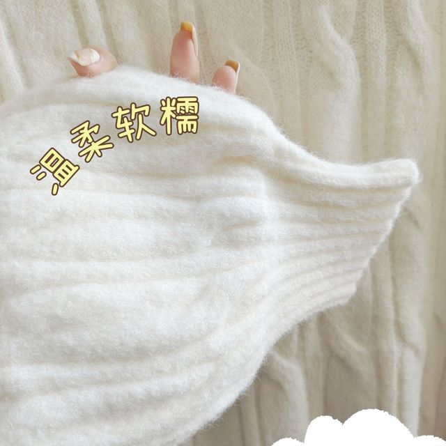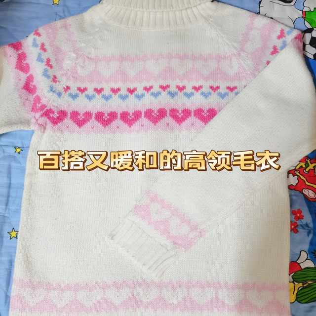 米白色與粉交織毛衣,保暖時(shí)尚