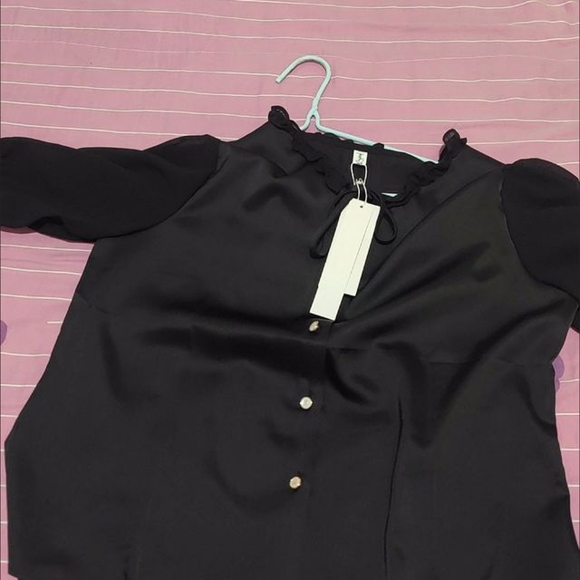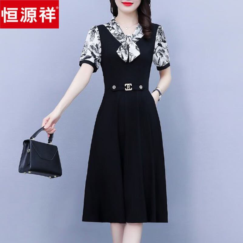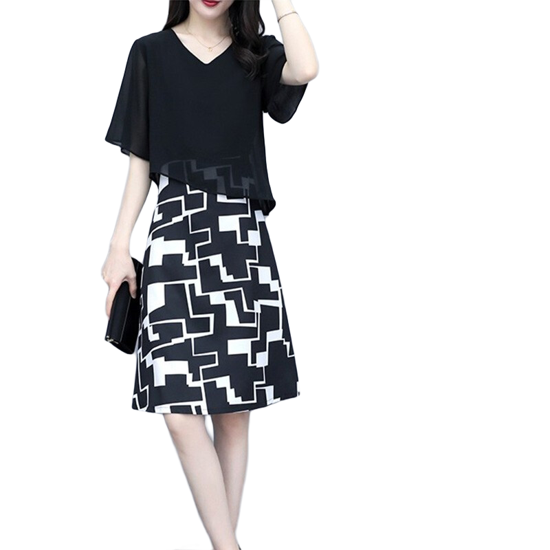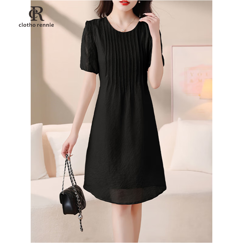 江南故事媽裝夏季套裝:珍珠白上衣與黑色雪紡褲的優(yōu)雅組合