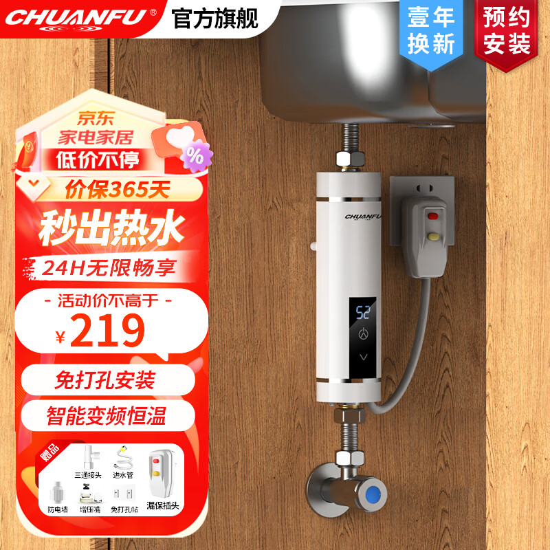 109元榮事達(dá)(Royalstar)電熱水龍頭變頻恒溫3s速熱即熱式廚房熱水寶廚房衛(wèi)生間兩用不銹鋼機(jī)身小廚寶快熱式電熱水器 【白色數(shù)顯】溫度數(shù)顯 漏保 3米電源線京東 2k