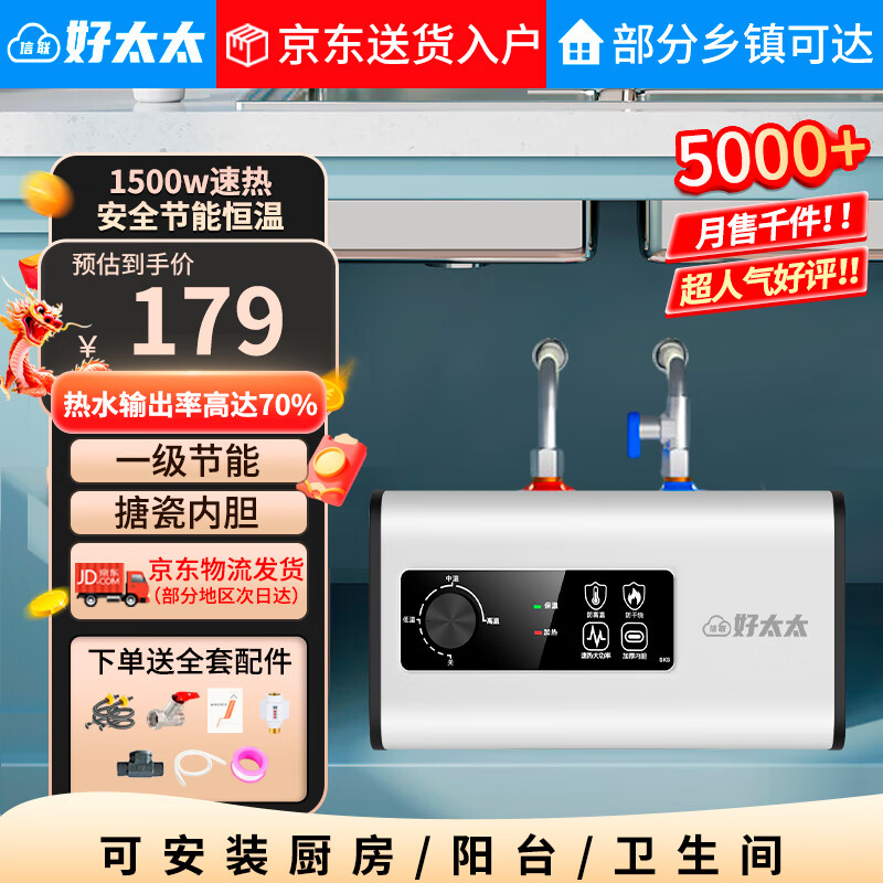 318元先科【店鋪補(bǔ)貼20%】廚寶儲(chǔ)水式家用小廚寶廚房迷你熱水器小尺寸一級(jí)能效熱水寶恒溫洗碗洗菜電熱水器 10L 1500W 白色數(shù)顯款 丨一級(jí)能效 下出水上門安裝京東 2k