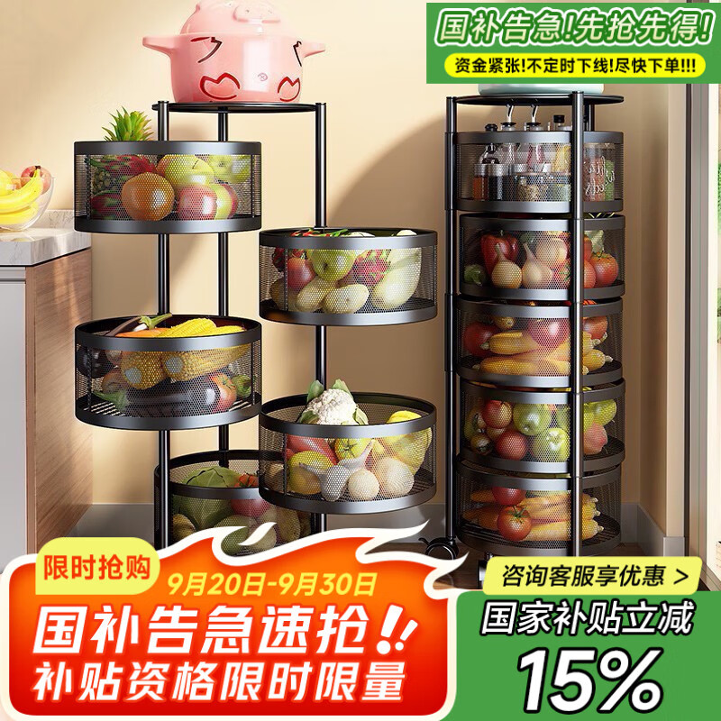 認(rèn)證挑戰(zhàn)賽。京嚴(yán)選 廚房置物架落地多層旋轉(zhuǎn)置物架廚房收納架儲(chǔ)物架果蔬菜置物架收納菜籃子架子 90%的選